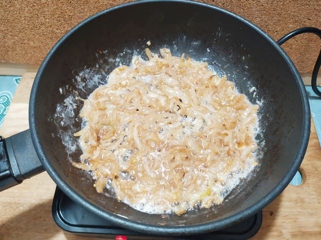 Жарить лук.