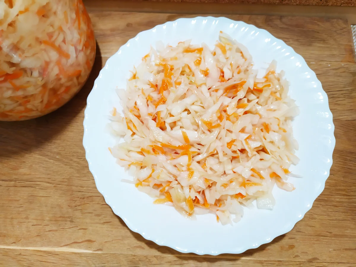 Простите,но это не классическая квашенная капуста,а залитая рассолом/маринадом,кому как нравится.Настоящая квашенная (ферментированная ) капуста,с молочнокислыми бактериями просто солится и выдерживается 3-4лня в тепле и потом на холод