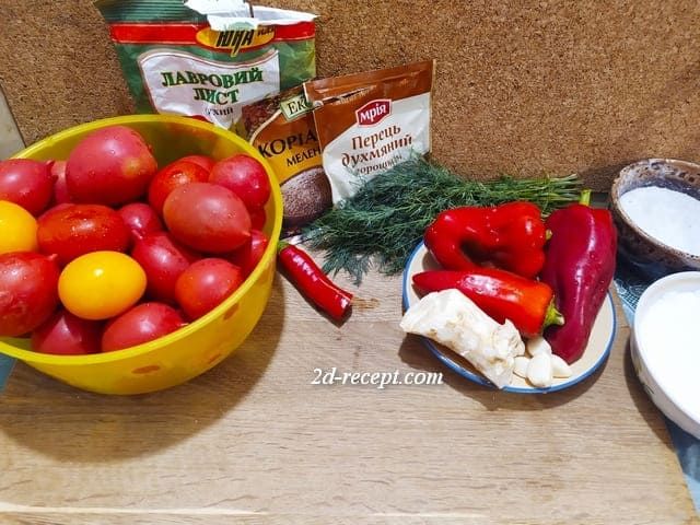 Подготавливаем продукты. Помидоры можно взять любые. В качестве зелени подойдет как петрушка, так и укроп.