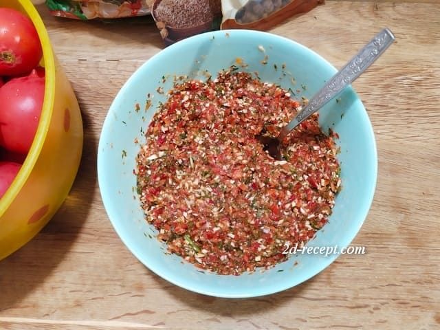 Готовим начинку для квашеных помидоров.