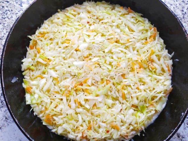 Выкладываем начинку из капусты.
