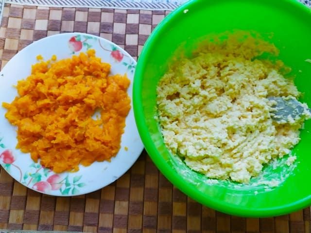 Для второй закуски натираем на терке морковь. Отваренные вкрутую яйца измельчаем вилкой, соединяем с измельченным филе и сыром. Выдавливаем чеснок и заправляем майонезом. Солим по вкусу. Формируем шарик из закуски и обваливаем в тертой моркови.