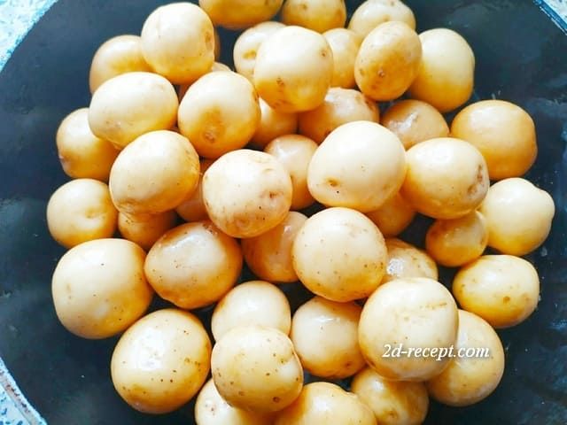 Перед началом приготовления картофель необходимо хорошо промыть. Чистить не нужно. Если у вас крупная картошка, ее нужно разрезать на несколько частей.