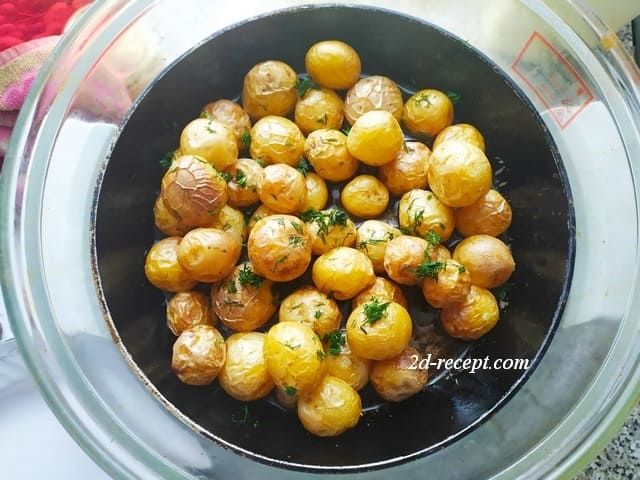 Запекаем картошку в духовке или аэрогриле до готовности. Мы запекали в аэрогриле 40 минут. Прикрывать картошку не нужно. Когда картофель запечется, его можно присыпать рубленым укропом. Также по желанию в еще горячую картошку можно выдавить зубок чеснока и перемешать. Будет Вкусно!